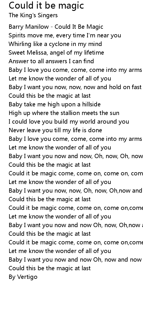Could it be magic come, come on, come on, come, Oh,come into my eyes