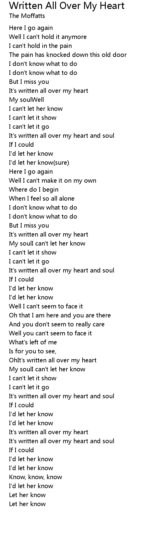 OhIt's written all over my heart |