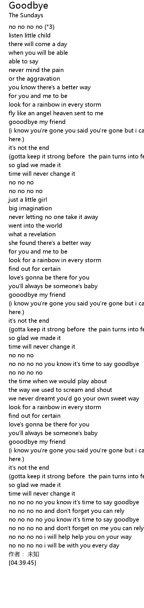 | [02:36.50] | no no no no you know it' s time to say goodbye |