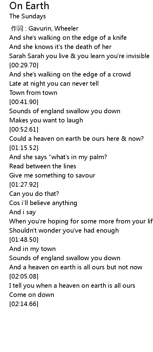 | [01:08.35] | Could a heaven on earth be ours here now? |