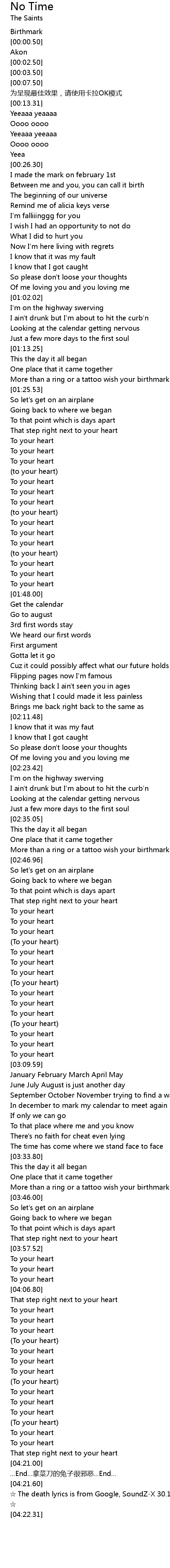 | [03:39.50] | More than a ring or a tattoo wish your birthmark that reminds of you |