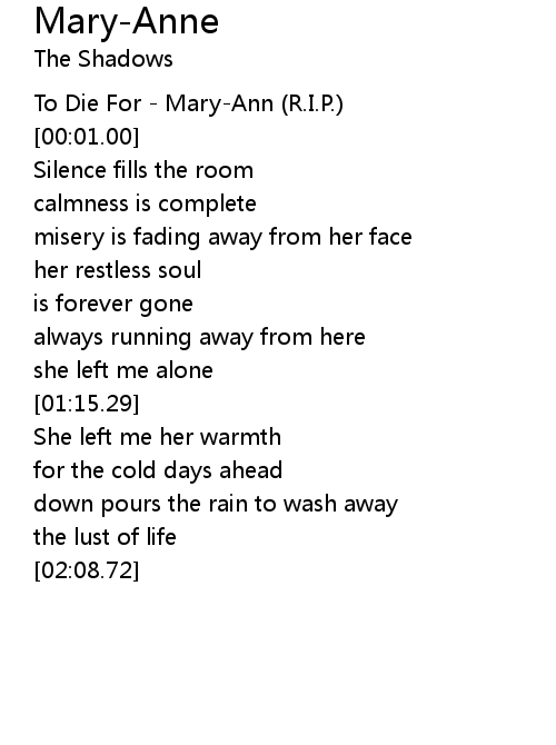 | [00:00.00] | To Die For - Mary-Ann (R.I.P.) |