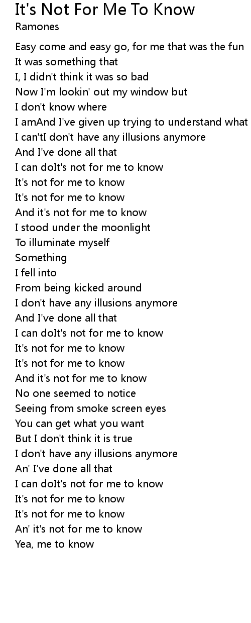 An' it's not for me to know |