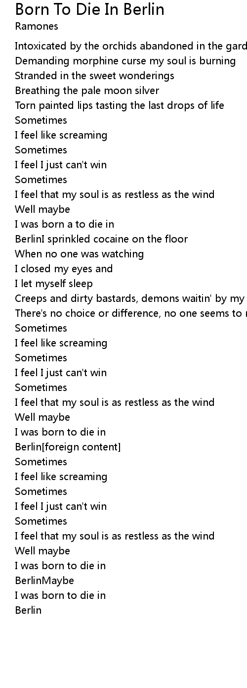I was born to die in |