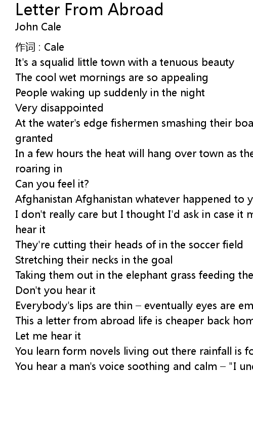 | 歌曲 | Letter From Abroad |