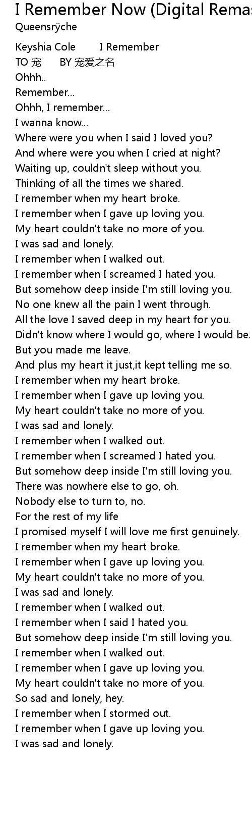 | 歌曲 | I Remember Now (Digital Remaster) |
