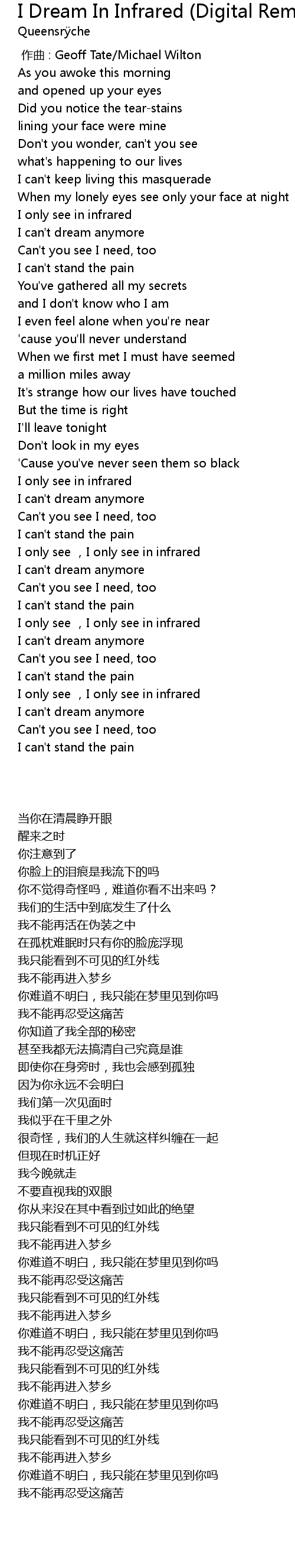| [02:33.68] | I only see ,I only see in infrared |