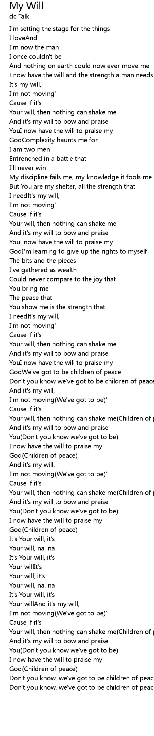 Your will, then nothing can shake me(Children of peace) |