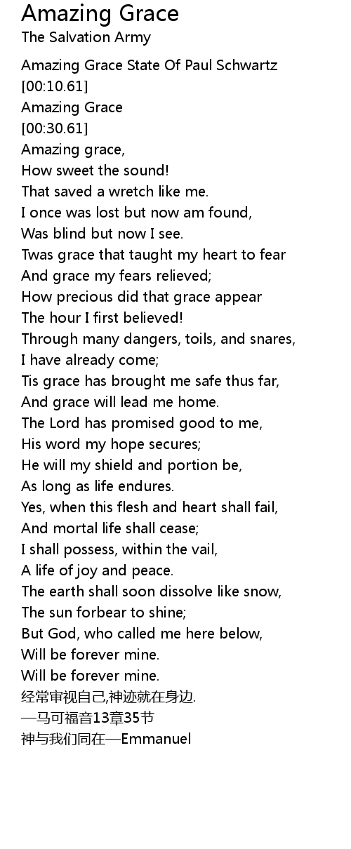 | [00:00.00] | Amazing Grace State Of Paul Schwartz |