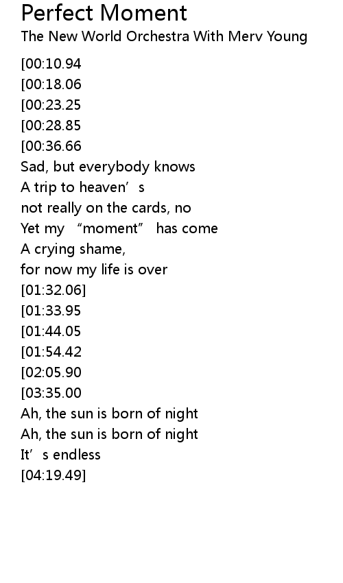 | [03:00.70][01:33.95] | So perfect, this moment |