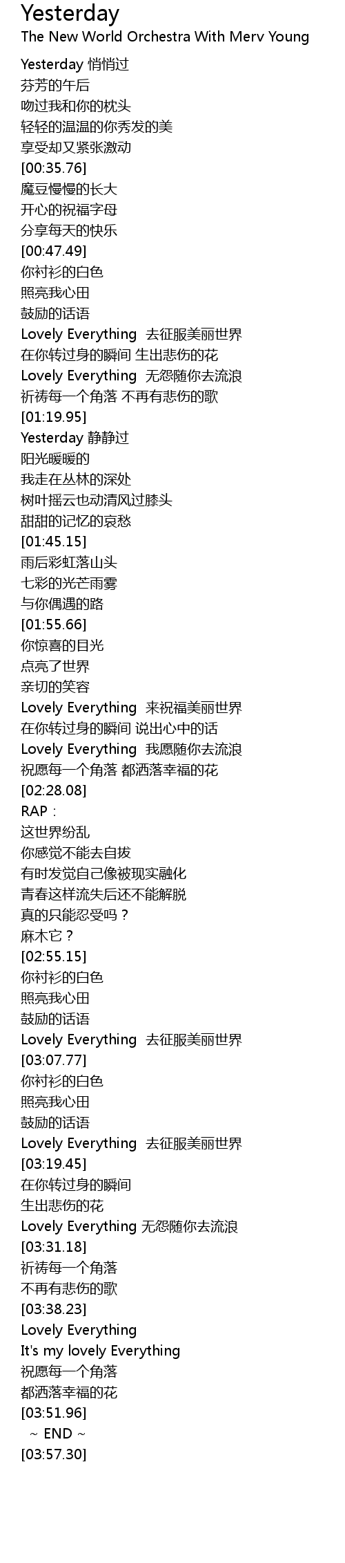 | [03:15.37] | Lovely Everything qu zheng fu mei li shi jie |