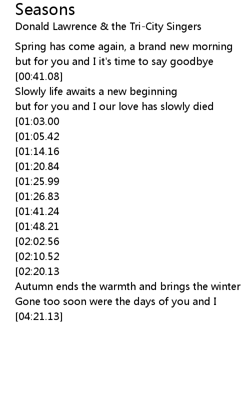 | [03:46.52][02:10.52] | 季节变迁 我的爱不改变 |