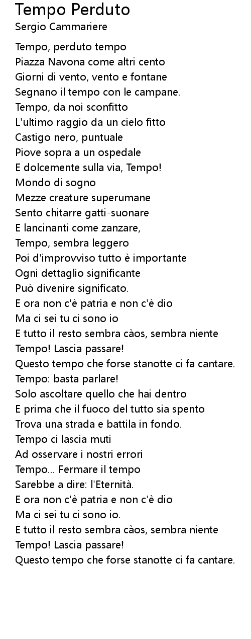 | Questo tempo che forse stanotte ci fa cantare. | |