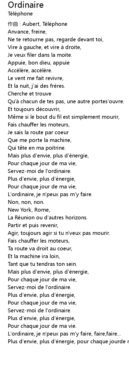 | L' ordinaire, je n' peux pas m' y faire, faire, faire... | |