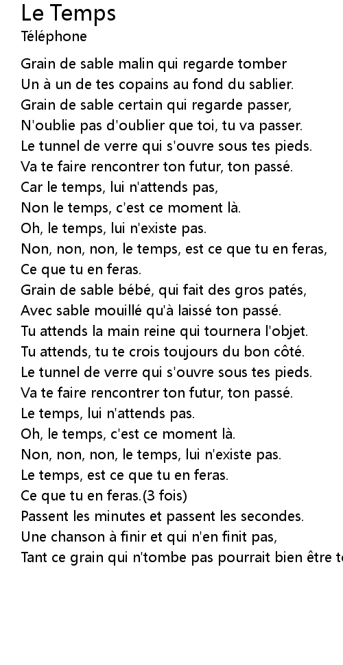 | Non, non, non, le temps, est ce que tu en feras, | |