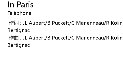| [00:00.000] | zuò cí : JL Aubert B Puckett C Marienneau R Kolinka J L Aubert L Bertignac |