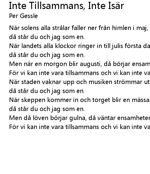 | 歌曲 | Inte Tillsammans, Inte Isär |