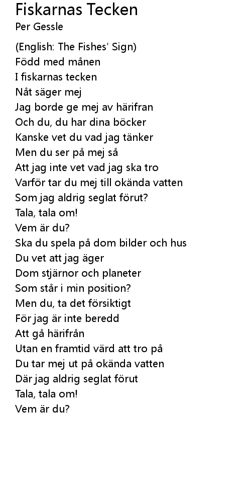 | 歌曲 | Fiskarnas Tecken |