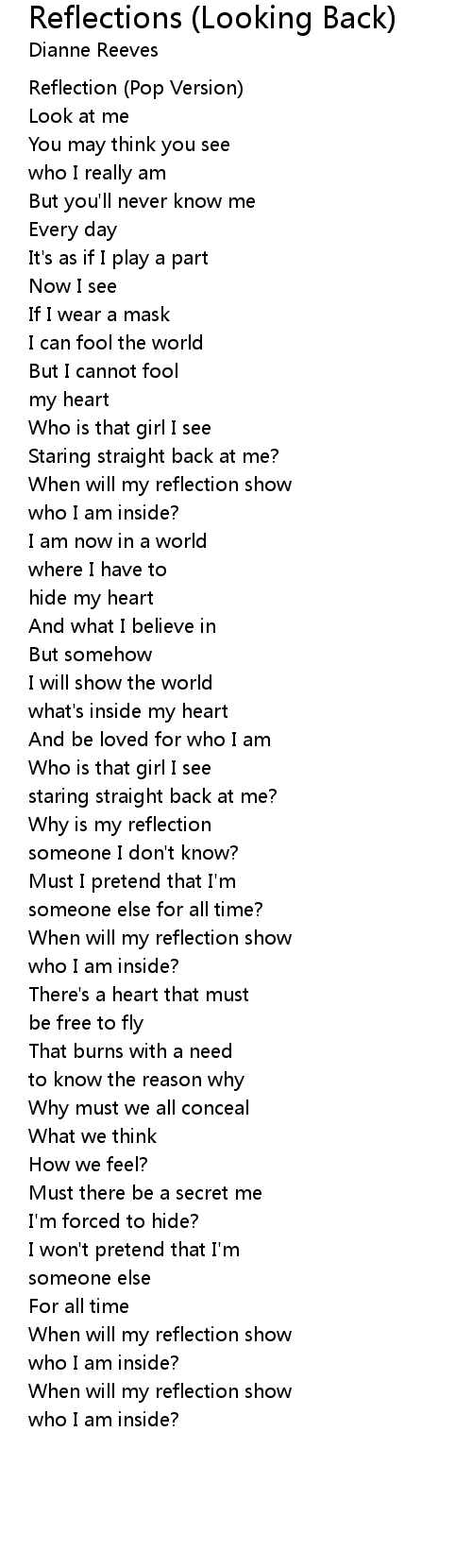 Reflections (Looking Back) 歌词