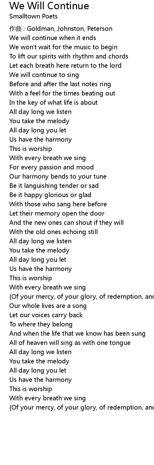 | (Of your mercy, of your glory, of redemption, and the gospel story) | |