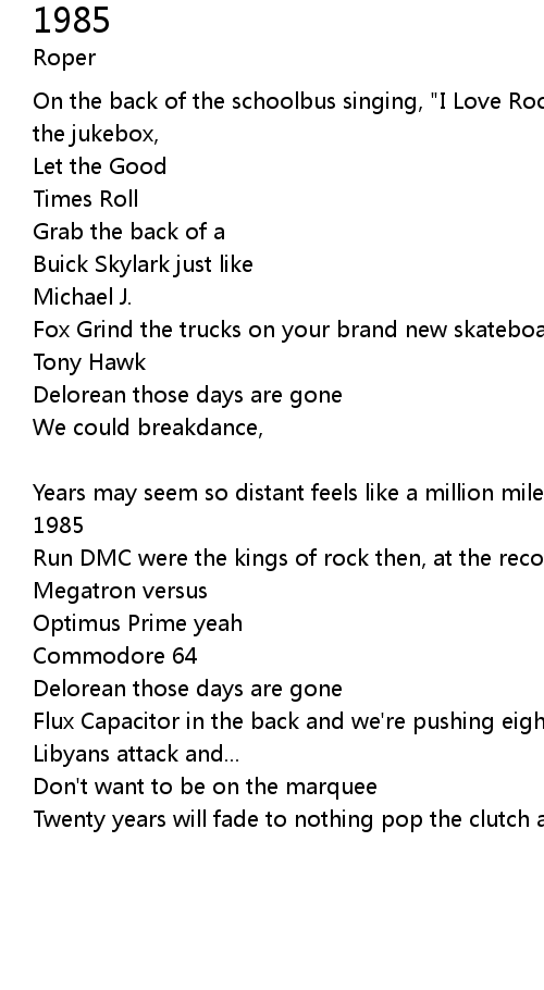 Years may seem so distant feels like a million miles troubles were nonexistant 1985 |