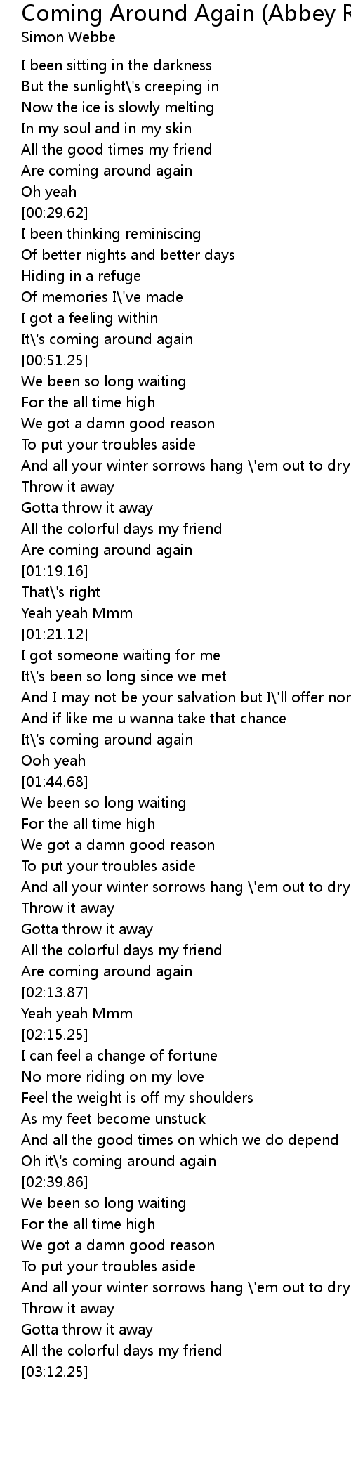 Oh it\'s coming around again |
