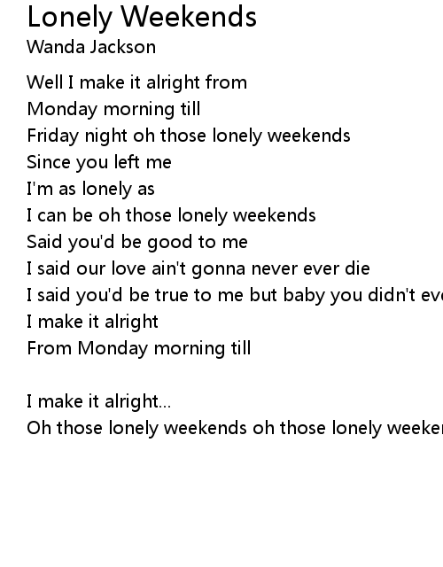 | Oh those lonely weekends oh those lonely weekends look out those lonely weekends |