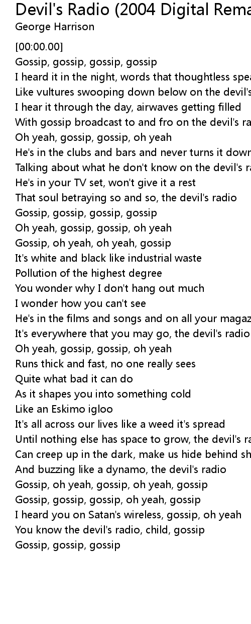 Gossip, oh yeah, gossip, oh yeah, gossip |