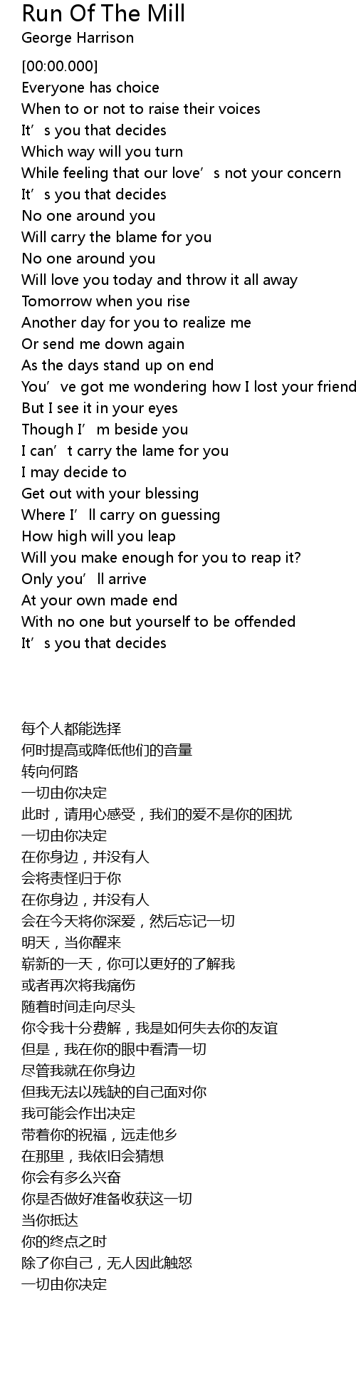 | 歌曲 | Run Of The Mill |