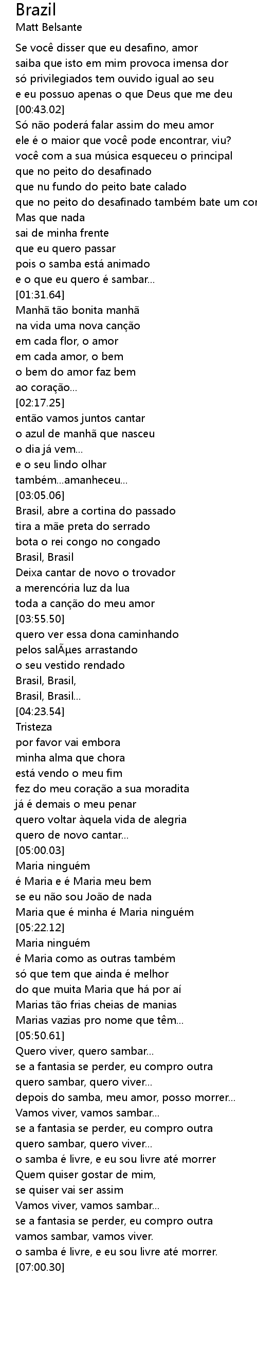 | [06:09.06] | depois do samba, meu amor, posso morrer... |
