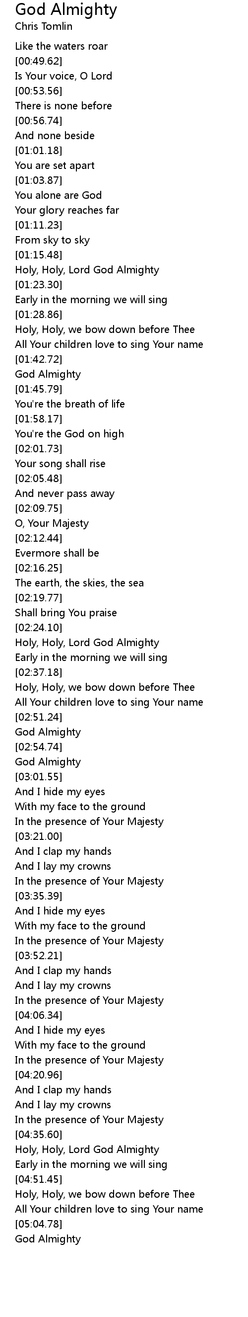 Holy, Holy, Lord God Almighty |