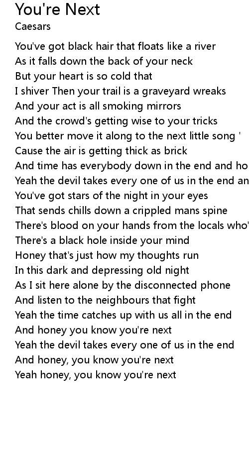 And time has everybody down in the end and honey you know you're next |