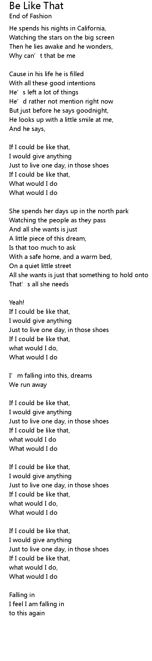 | 歌曲 | Be Like That |