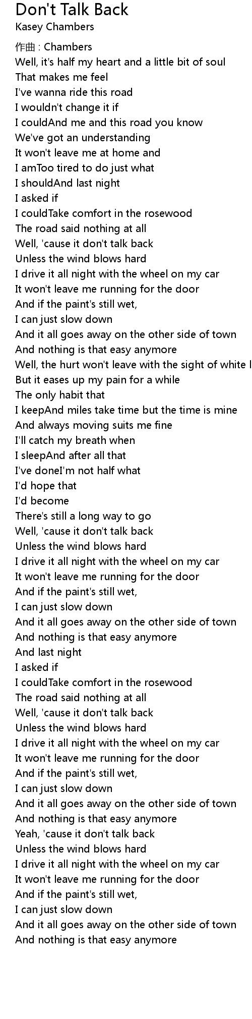 | 歌曲 | Don't Talk Back |