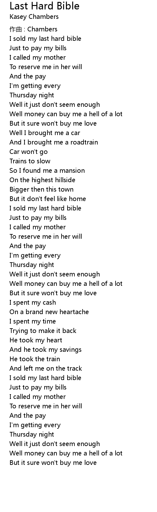 | I sold my last hard bible | |