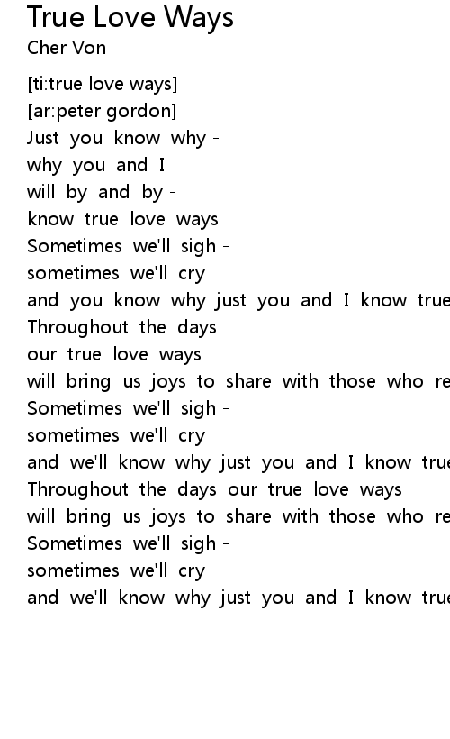 and you know why just you and I know true love ways |