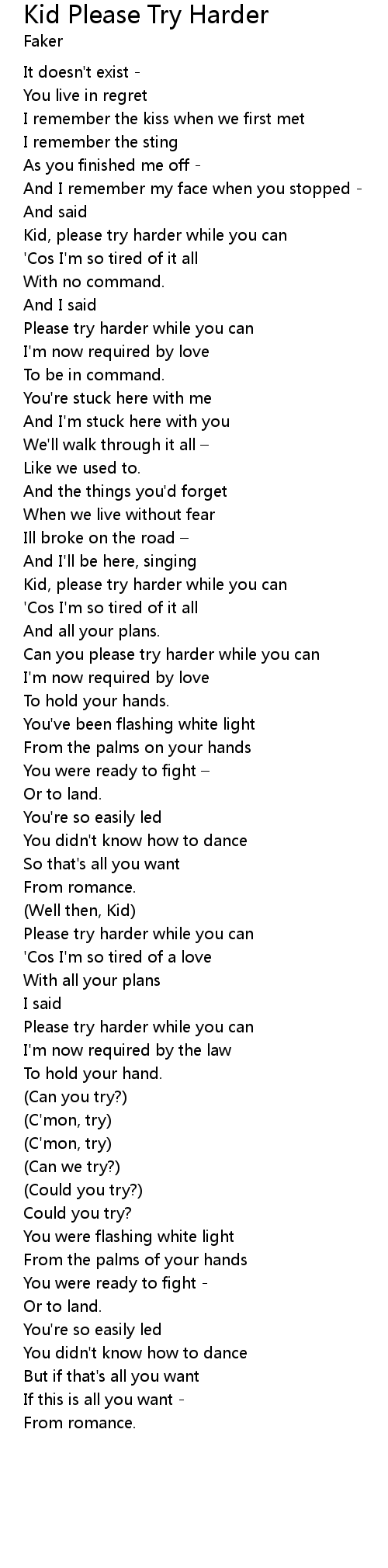 | 歌曲 | Kid Please Try Harder |