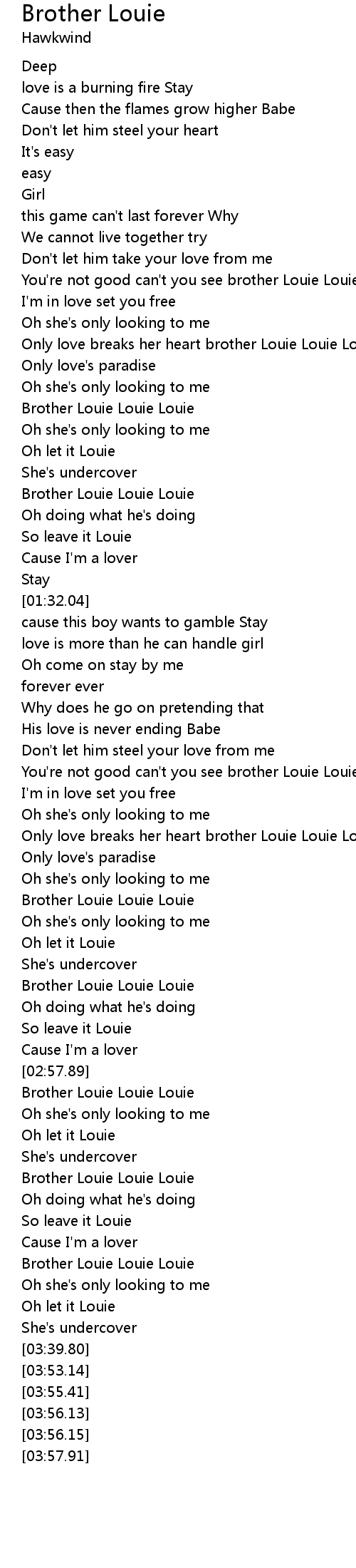 Brother Louie Louie Louie |