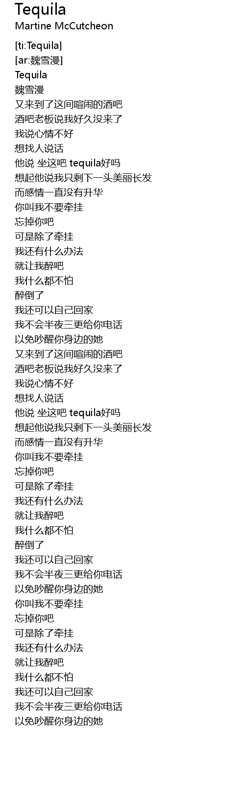 | [00:53.03] | 他说 坐这吧 tequila好吗 |