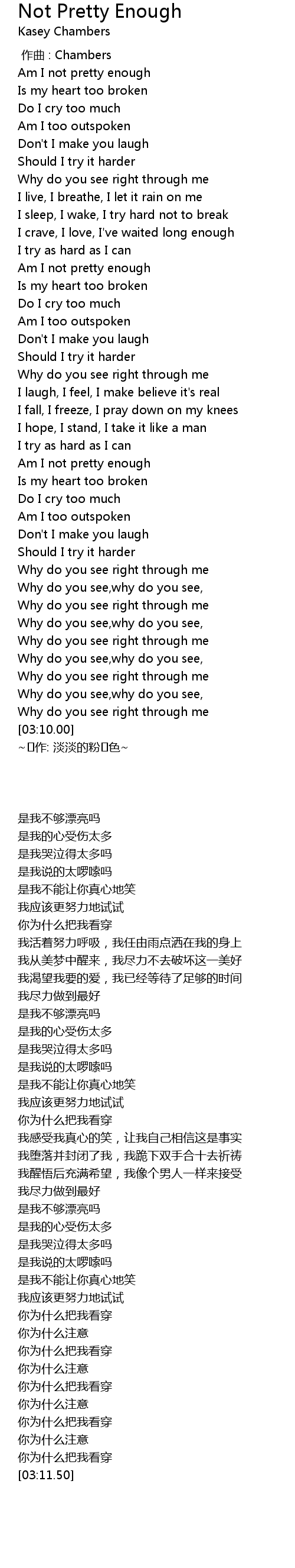 | [02:08.58] | Am I not pretty enough |