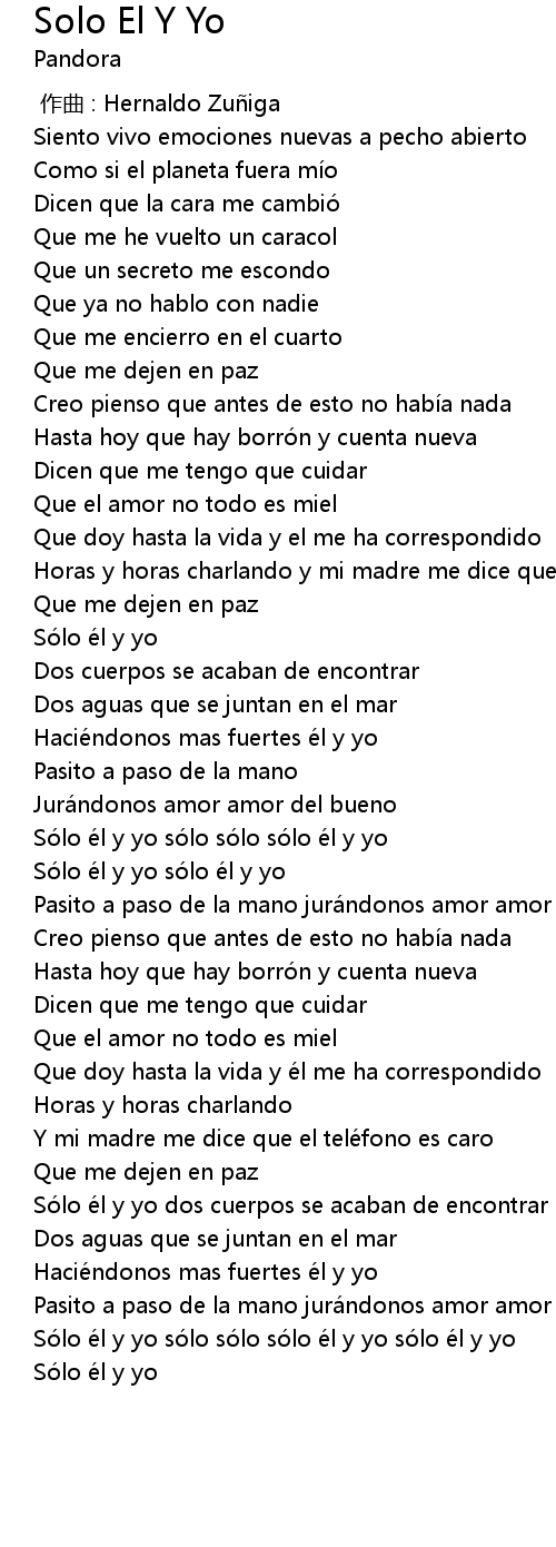 | [01:48.93] | Sólo él y yo sólo sólo sólo él y yo |