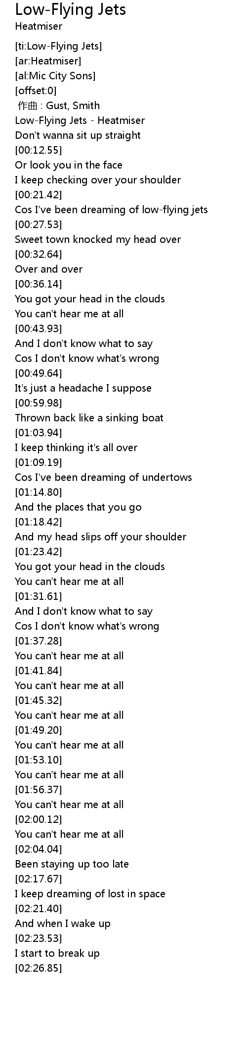 | [00:00.47] | Low-Flying Jets - Heatmiser |