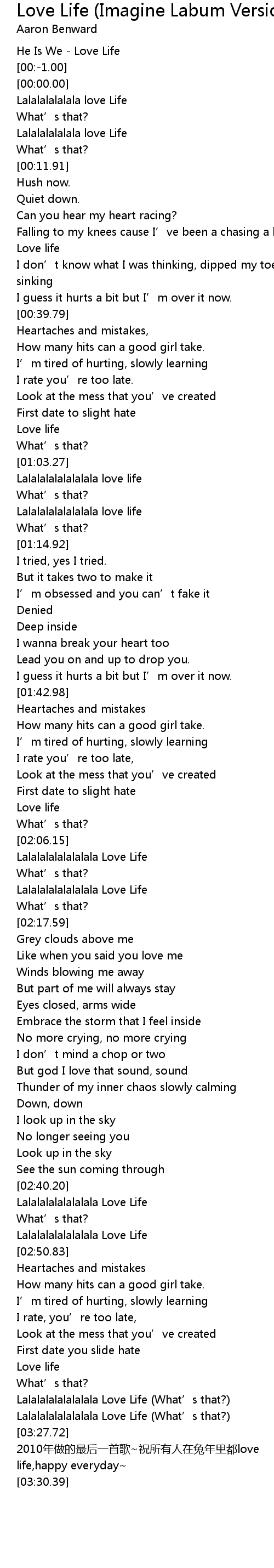 | [03:20.48] | Lalalalalalalalala Love Life What' s that? |