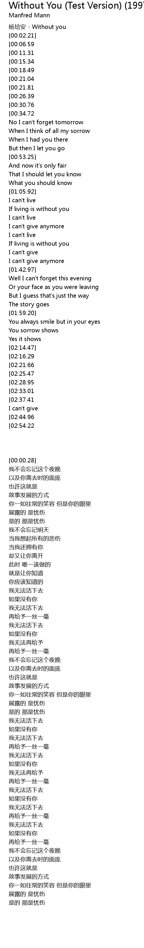 | 歌曲 | Without You (Test Version) (1997 Digital Remaster) |