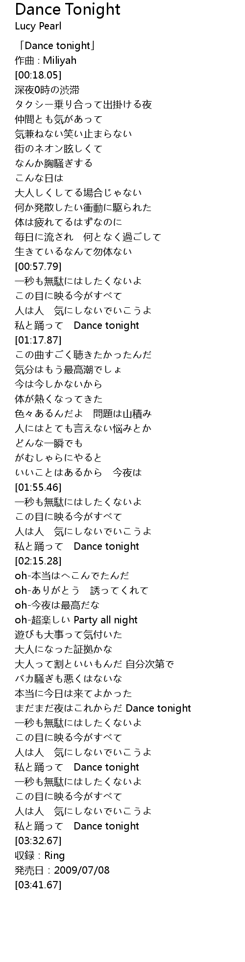 | [00:01.05] | 「Dance tonight」 |
