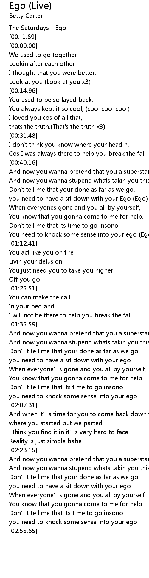 | [00:52.62] | you need to have a sit down with your Ego (Ego) |