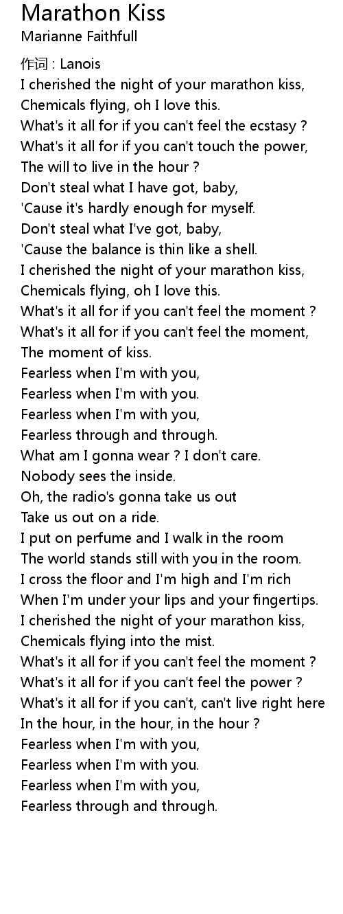 | I cherished the night of your marathon kiss, | |