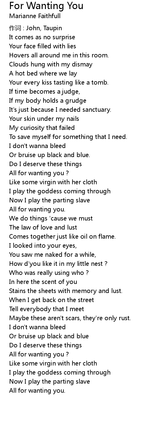 | All for wanting you. | |
