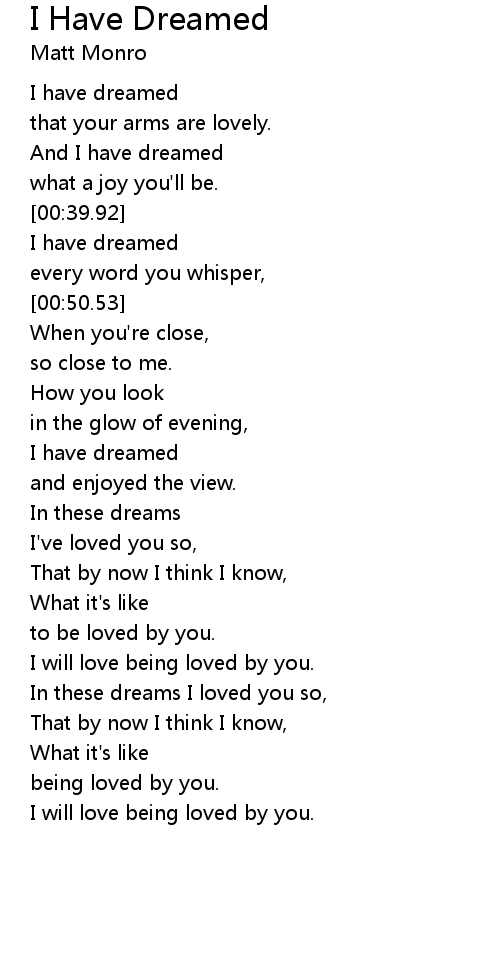 I have dreamed |