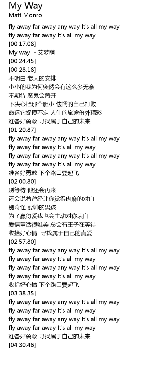 | [01:05.34] | 命运它捉摸不定 人生的旅途份外精彩 |